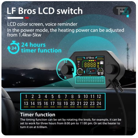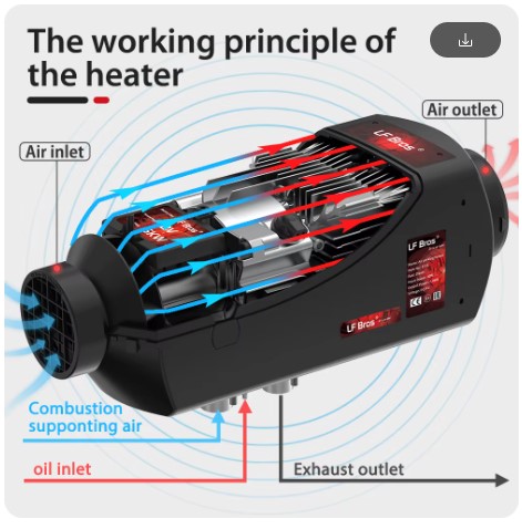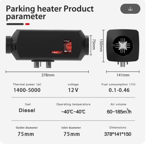LF BROS 5kw, 12V luftvärmare är en liten värmare med värme effektivitet till 5,0 kW.